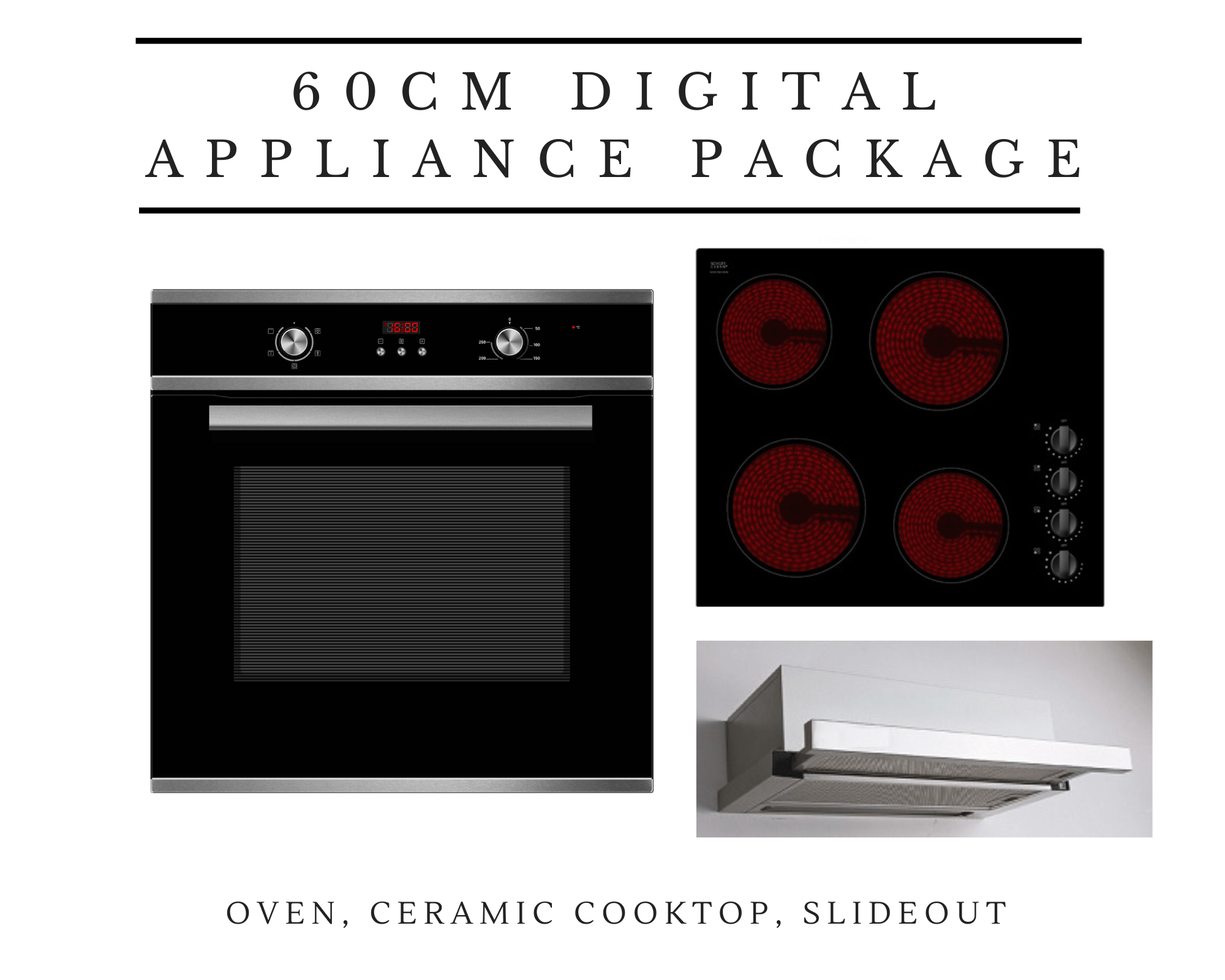 Bring your kitchen to life with this 60cm Kitchen Appliance package! This package has everything you need, including an oven, ceramic cooktop and slideout, for an effortless cooking experience.