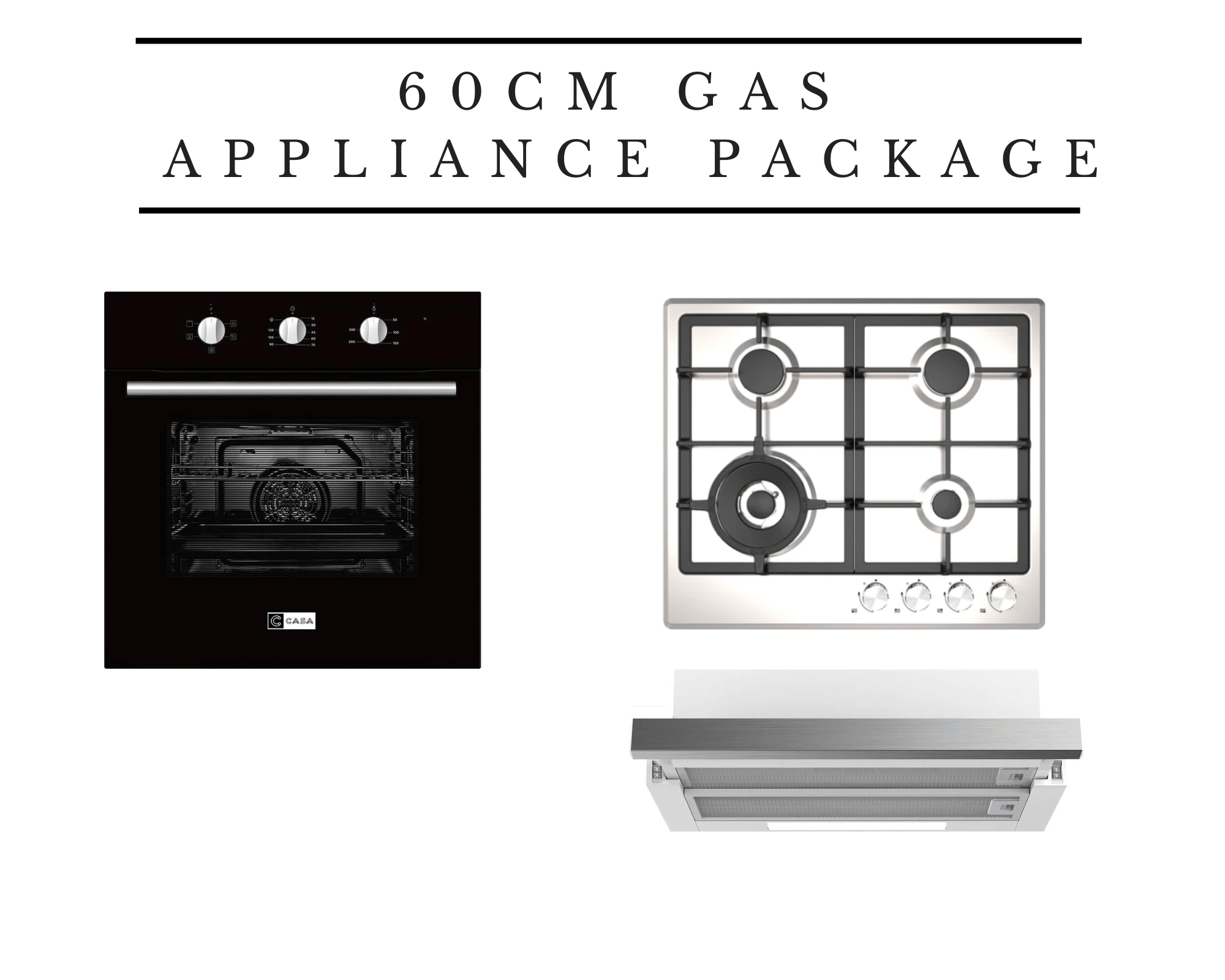 60cm Kitchen Appliance Package with Oven, Gas Cooktop & Slideout Rangehood