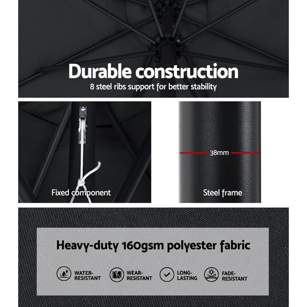 With high-quality water and UV-resistant polyester fabric and durable steel construction, the Instahut Outdoor Umbrella will last you through all seasons.