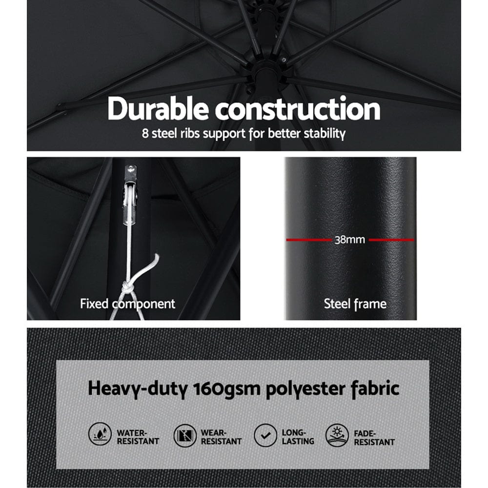 With high-quality water and UV-resistant polyester fabric and durable steel construction, the Instahut Outdoor Umbrella will last you through all seasons.