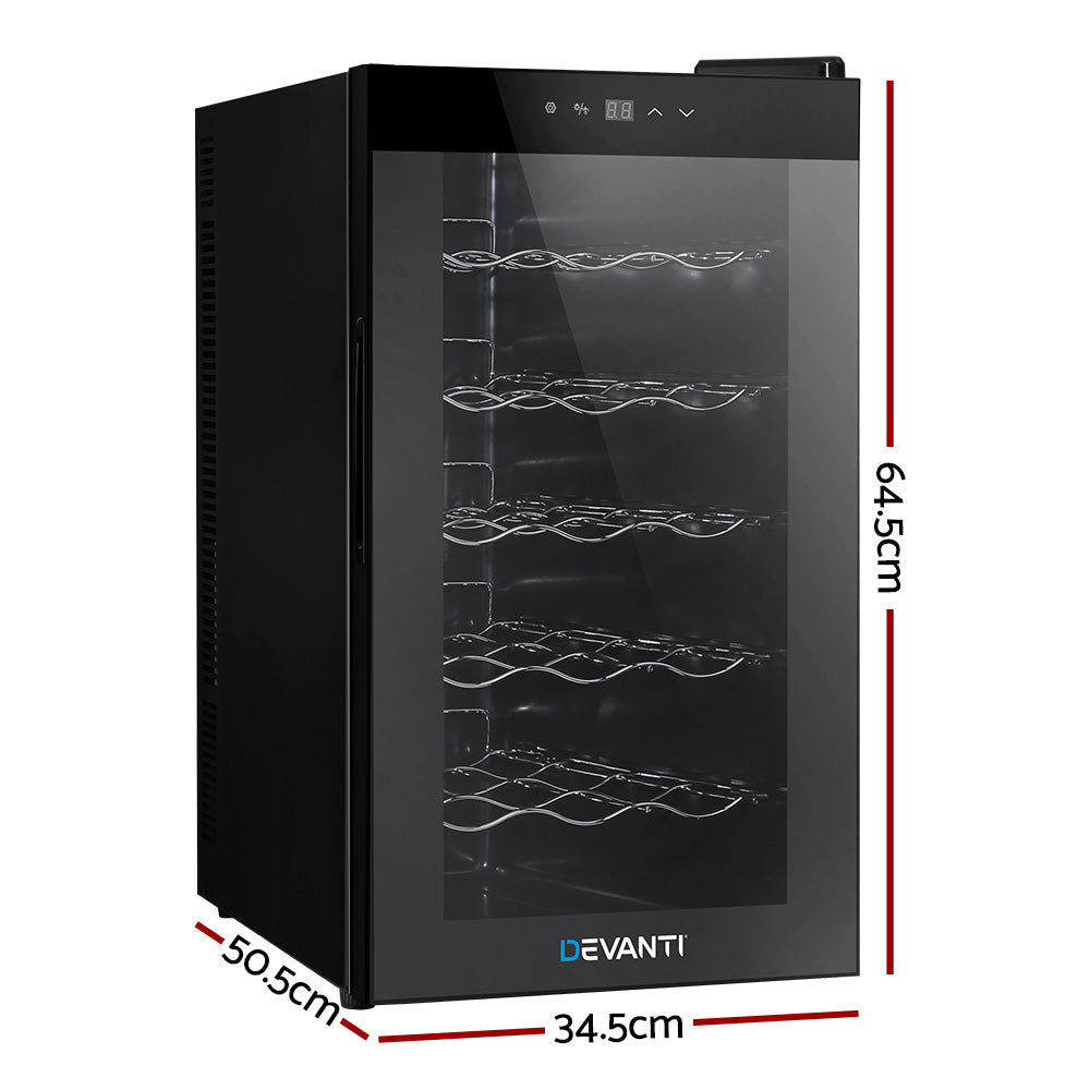 Need a good and reliable wine cooler? Look no further than our Devanti Wine Cooler. Utilising the latest high precision thermoelectric cooling technology, our wine cooler ensures your favourite vintages are kept at their prescribed temperatures with its circulated cool air. The touch control panel makes for easy temperature adjustments and the built-in interior LEDs help you to see your wines in the best light. The stylish and compact design stores up to 18 bottles of wine in a neat and tidy shelving system. Better still, the double-glazed glass door is UV-resistant and provides excellent insulation along with the 30mm thick foam wall. The ensemble works quietly and efficiently and has a handy child-lock on its control panel for total peace of mind. Don’t trust just any product with your precious vintages, trust Devanti.